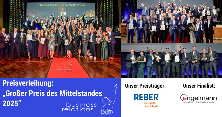 Zwei Unternehmen, die von der br business relations GmbH als offizielle Servicestelle der Oskar-Patzelt-Stiftung nominiert wurden, schafften es in die Endrunde des „Großen Preis des Mittelstandes“2025.